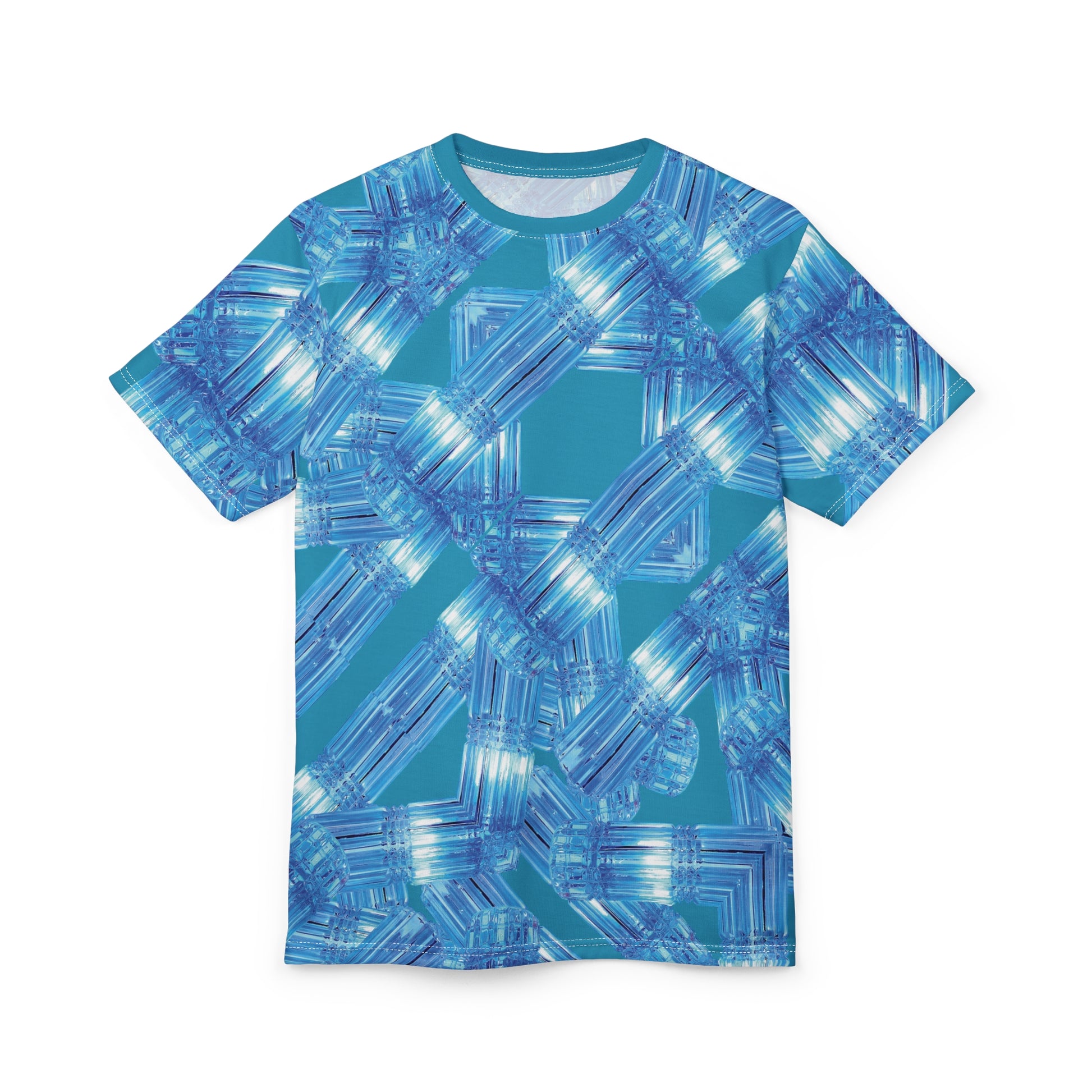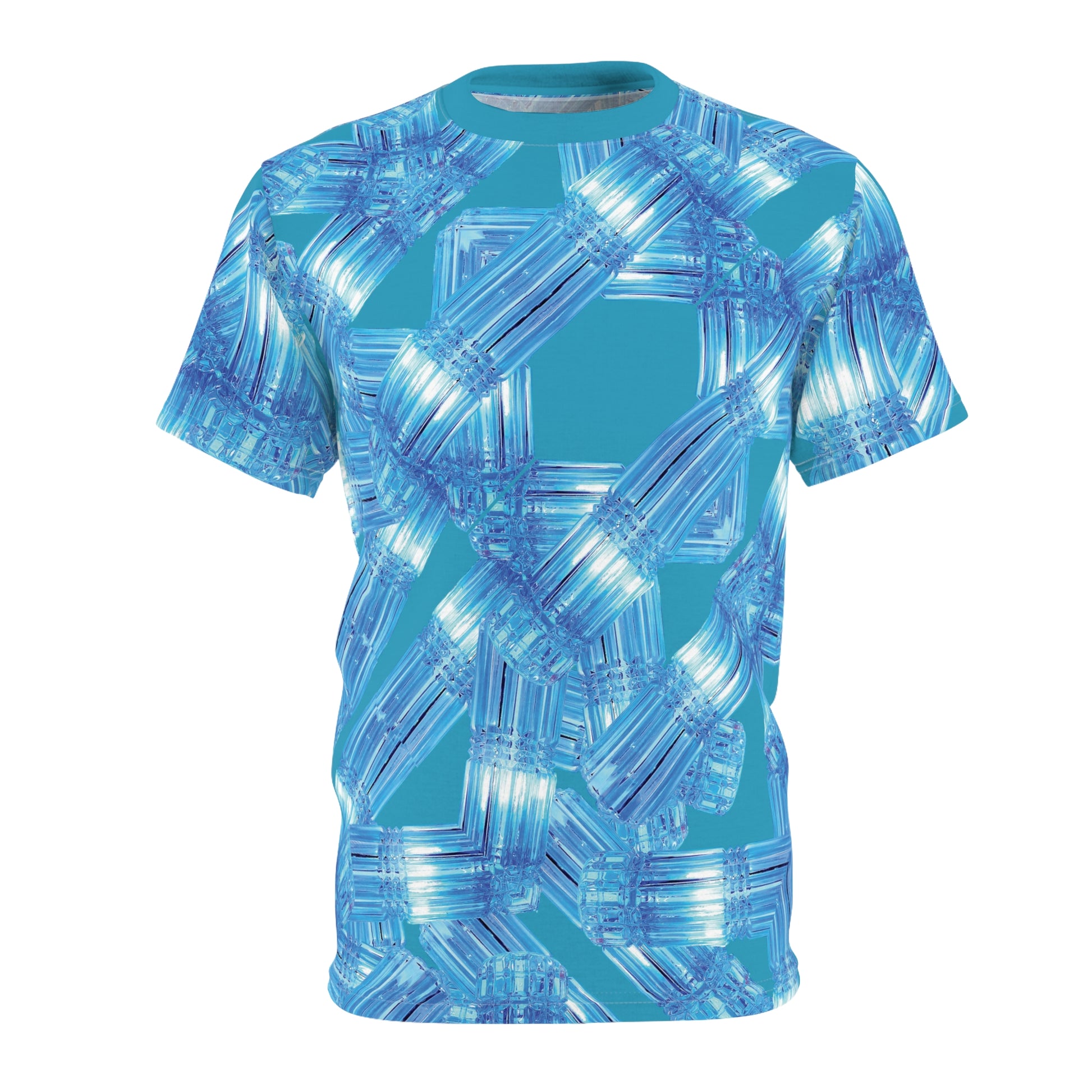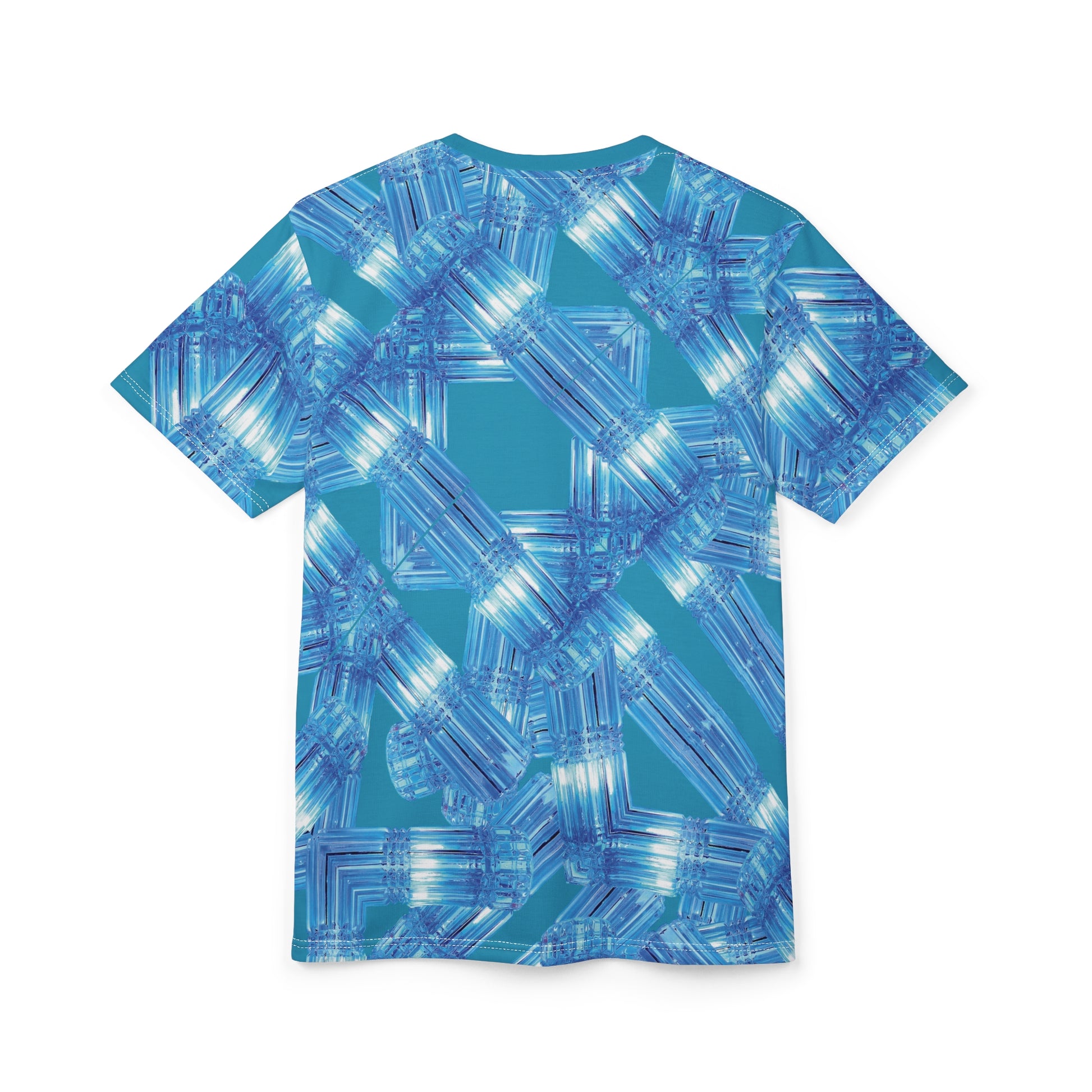 This blue T-Shirt with an abstract design gives off a cool, icy vibe. Perfect for those who love unique and artistic clothing. Ideal for casual wear or for adding a pop of creativity to your outfit. Relevant for summer, art enthusiasts, and casual gatherings.